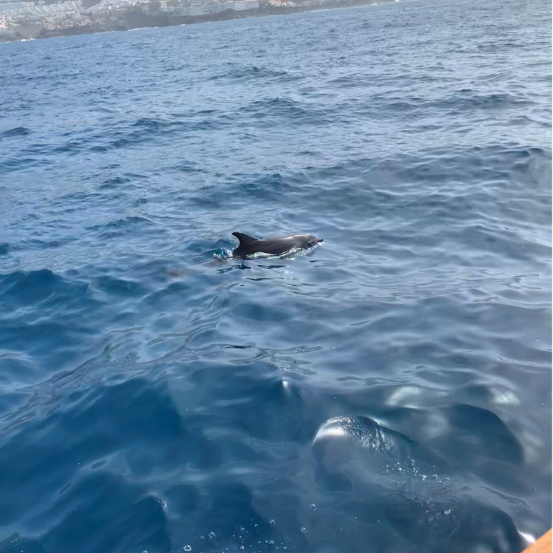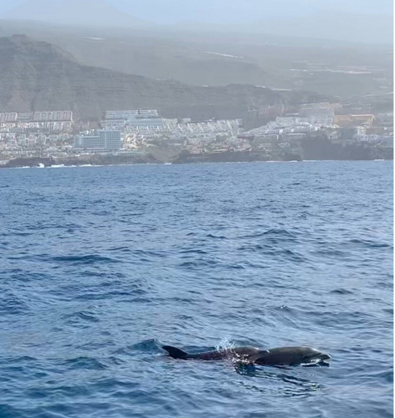 Nous avons pu regarder pendant prêt de 20 minutes Une famille de dauphins qui nageait au large de los Gigantes.
