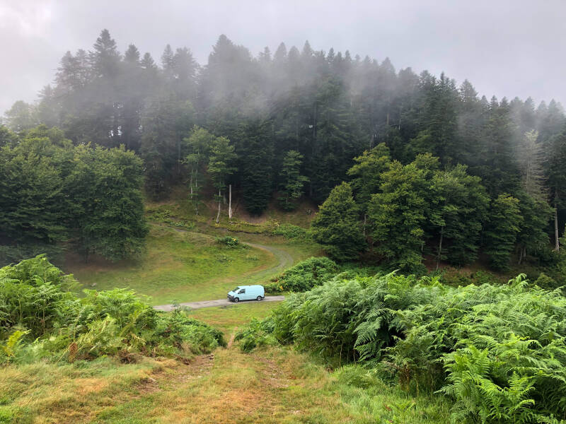 Direction les Pyrénées, j'ai trouvé un spot bien cool à Bourg oueil, mais arrivée là bas, j'ai vu des tonnes de vans et camping car !