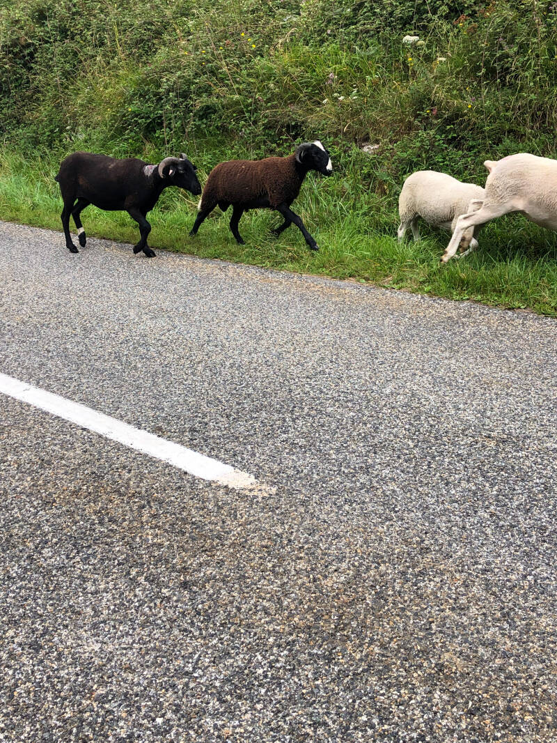 je suis passée par l'Ariège, je me suis arrêtée manger aux délice d'Arstein et sur le chemin j'ai était escortée par un groupe de moutons !