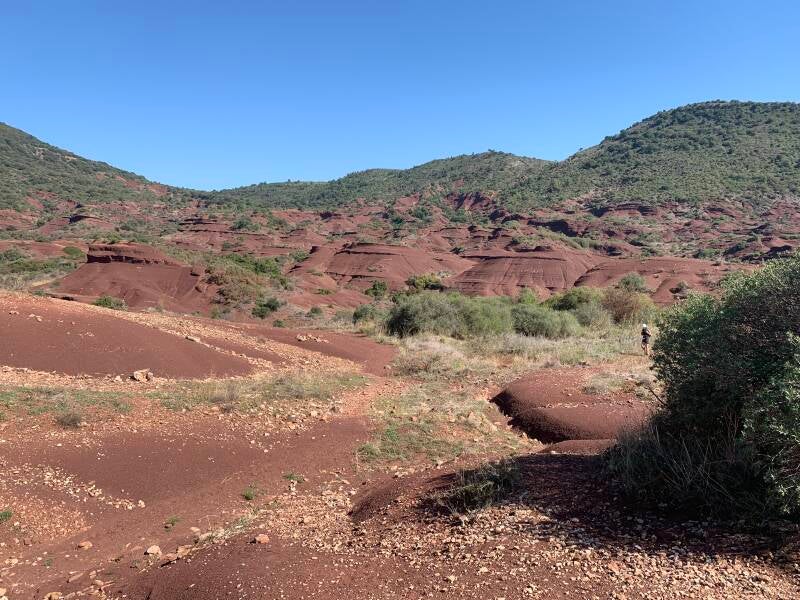 Au milieu des ruffes, cette terre rouge dont la couleur est due à la présence d'oxyde de fer. Un dépaysement total, l'impression d'être sur une autre planète avec ces couleurs typiques des ruffes, à voir absolument et à préserver.