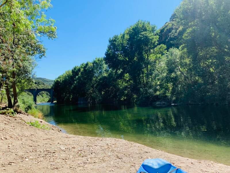 Ca y est arrivée à Roquebrun après 15 km d'effort, de rire, de repos de l'esprit et .. de gamelles!